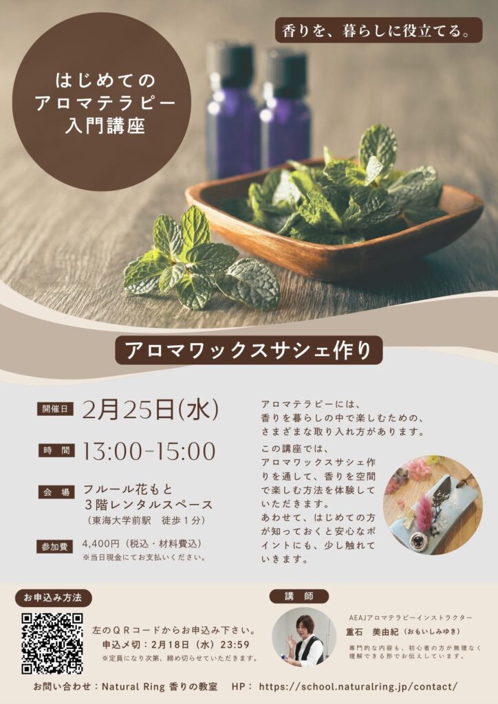 はじめての方でも無理なく取り組める内容ですので、アロマに興味はあるけれど、何から始めればいいか迷っている方にもおすすめです。